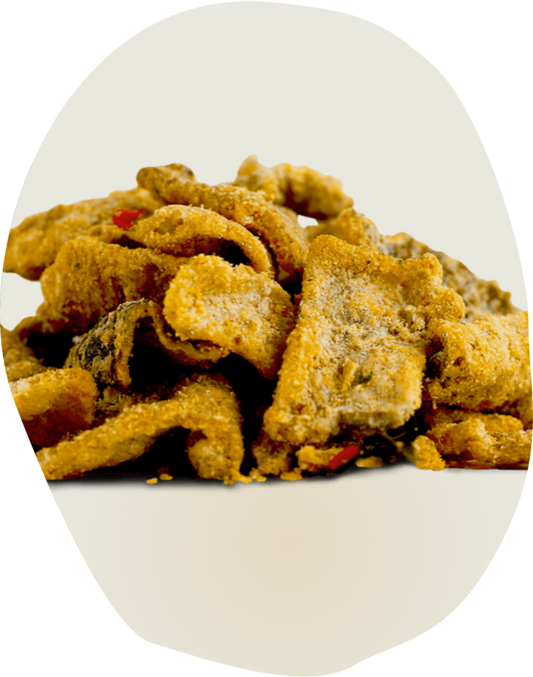 Featured in our best selling Salted Egg Salmon Skin, we only use upcycled salmon skin: rich in marine collagen, good-for-you Omega 3s, and a whopping 8g of Protein. Low carb and keto-friendly. Outrageously crispy.