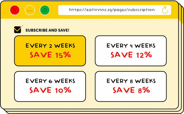Orders above $20 will enjoy free shipping within Singapore. To enjoy free shipping, total subscription order value must be above $20.