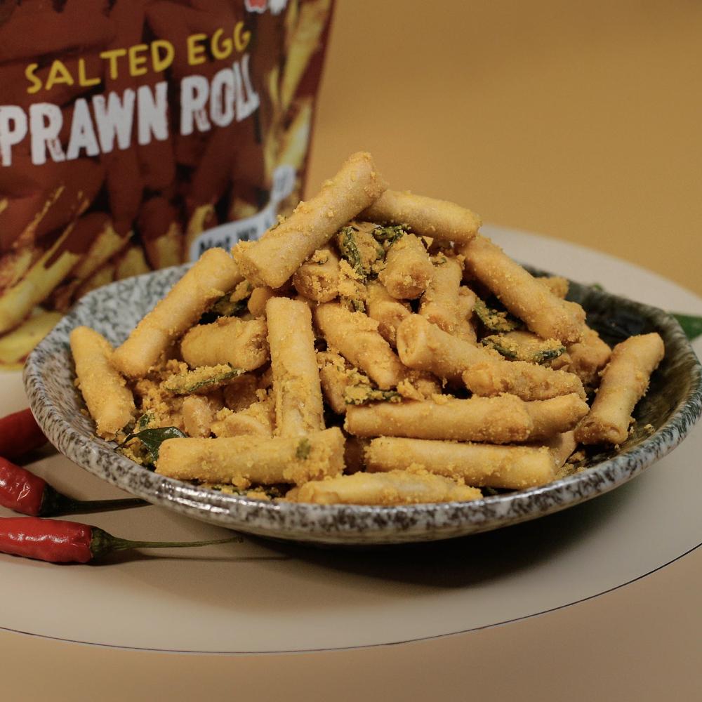 Prawn rolls are the must-have snacks for festivities and we’ve added a salted egg twist to this irresistible hae bee hiam (spicy shrimp) filled roll goodness. Hae bee hiam is a perfect combination of shrimp and spices. With the added salted egg coating to the rolls, it takes just one bite. You’ll be experiencing a crunchy burst of salted egg and spicy shrimp flavours with each individual roll!