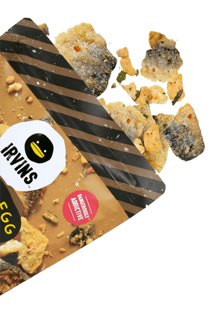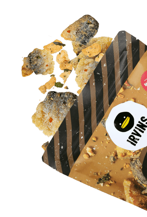 The one that started it all. The salted duck egg yolk is a familiar ingredient commonly used in Asian dishes, and we at IRVINS bring it to the next level. The crisps of our fried fish skin mixed with real salted egg, aromatic curry leaves, and vibrant red chili peppers creates an all-rounded multi-sensory snacking experience. Crunchy. Crispy. Flavourful.