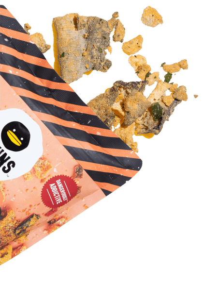 Crispy Atlantic salmon skin infused with the original Dangerously Addictive recipe made from a perfect blend of real salted egg, aromatic curry leaves, and spicy red chili. Crispy. Crunchy. Flavourful.